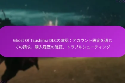 Ghost of TsushimaのDLCを正常に取得するには、まずゲームプラットフォームのアカウント管理セクションに移動します。PlayStation Networkアカウントを通じて購入履歴を確認することで、取引を検証し、ダウンロード可能なコンテンツにアクセスできることを確認できます。DLCが表示されない場合は、アカウントの同期やダウンロードエラーなどの一般的な問題に対処するためのトラブルシュ...